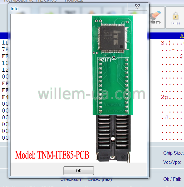 Обычный реализован через новый адаптер под пайку TNM-ITE85-PCB Производитель пока нам еще их не поставил, ожидаем поступление в ближайшее время. Как только появятся, сразу разместим в разделе адаптеры к программатору TNM. что пишет софт, при выборе программирования в данном режиме через адаптер.