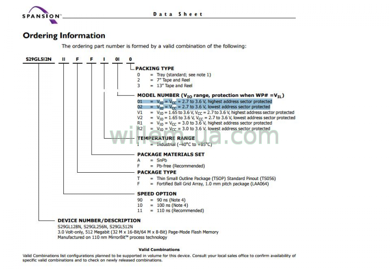 | попался даташитик.. ну как минимум одно отличие есть.. по последним цифрам в названии ... 01 = VIO = VCC = 2.7 to 3.6 V, highest address sector protected 02 = VIO = VCC = 2.7 to 3.6 V, lowest address sector protected