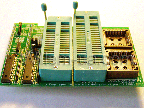 Совместим с любой версией Willem, в том числе и GQ-3X, GQ-4X Он имеет на борту DIP40 и DIP42 ZIF колодки и 2 PLCC44 колодки. Поддерживает DIP40 и DIP42 и PLCC44 корпуса 16-битных чипов EPROMs PLCC44: CAT28F102, M28F102, 28F102N.